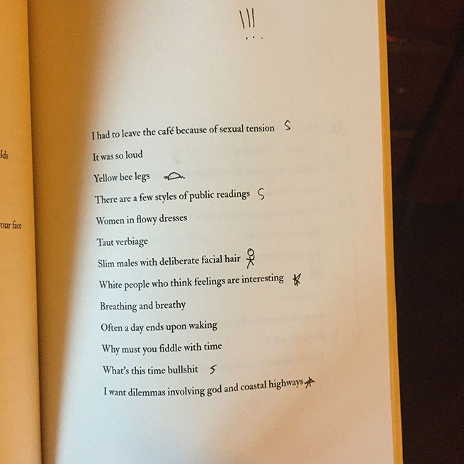 This is probably either the most twee thing or the most nutty thing a poet did in Brooklyn in February, or both. For what it’s worth, I did it before I knew I was going to write the review.
