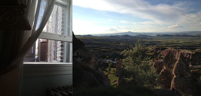 Walking in Istanbul near Cihangir with Timur. Translates roughly to “We came